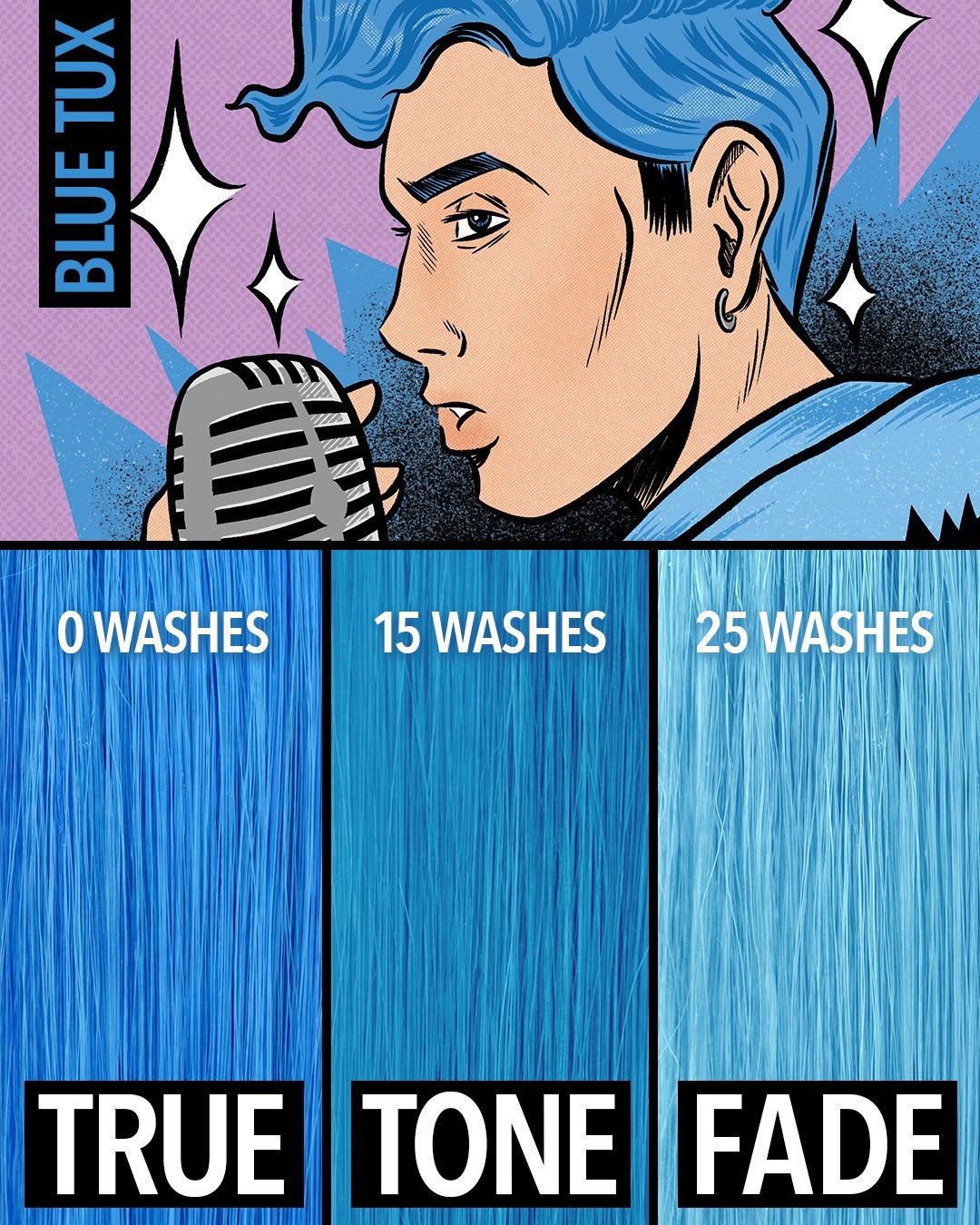 Pulp Riot's Blue Tux Light Blue is a vibrant, semi-permanent light blue hair color with anti-overworking technology and up to 50 washes of true-tone vibrancy.
