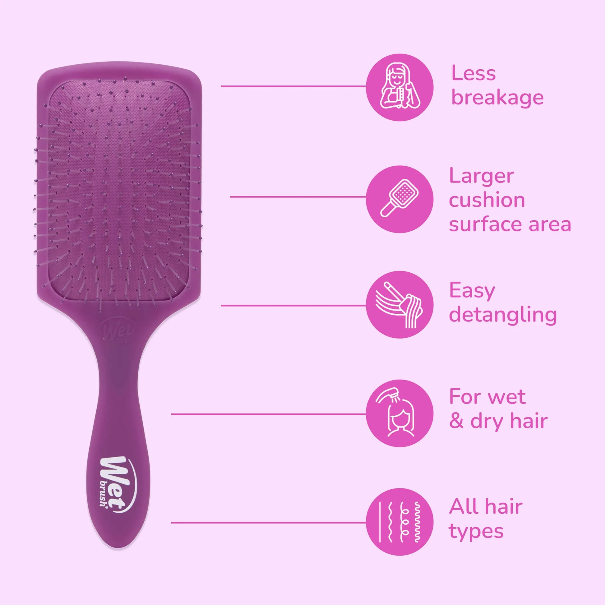 Wet Brush Paddle Detangler gently detangles long or thick hair with ultra-soft IntelliFlex bristles, reducing breakage by up to 55%. Its large paddle covers more hair at once for faster styling, wet or dry, with a comfortable ergonomic handle.